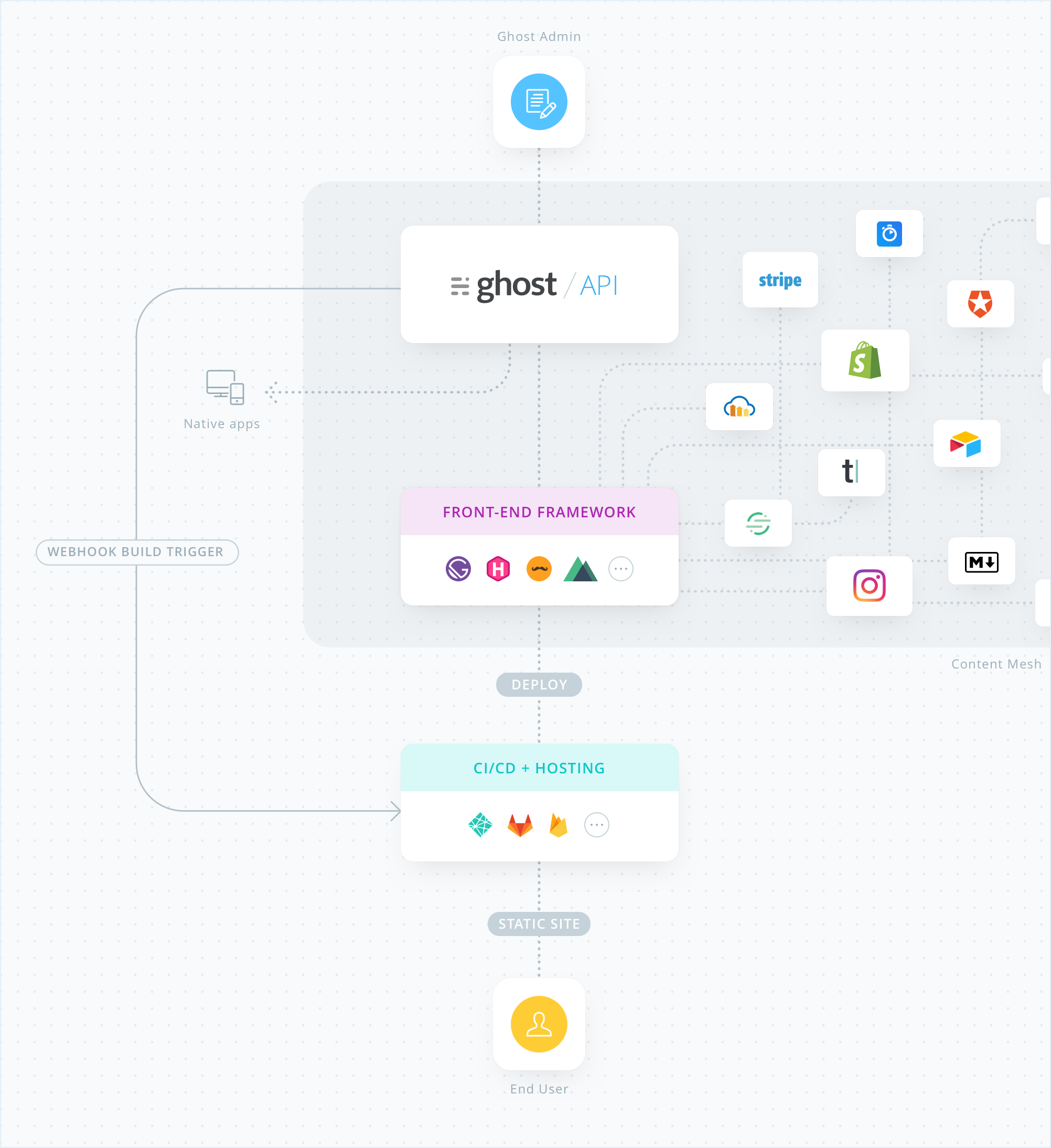 There has been a lot of progress around static site generators, front end frameworks and API-centric infrastructure in recent years, which has generated some very cool products, like Eleventy. Since Ghost allows you to completely replace its default Handlebars theme layer in favour of a front-end framework, you can use Gatsby to build your site statically from the Ghost API.